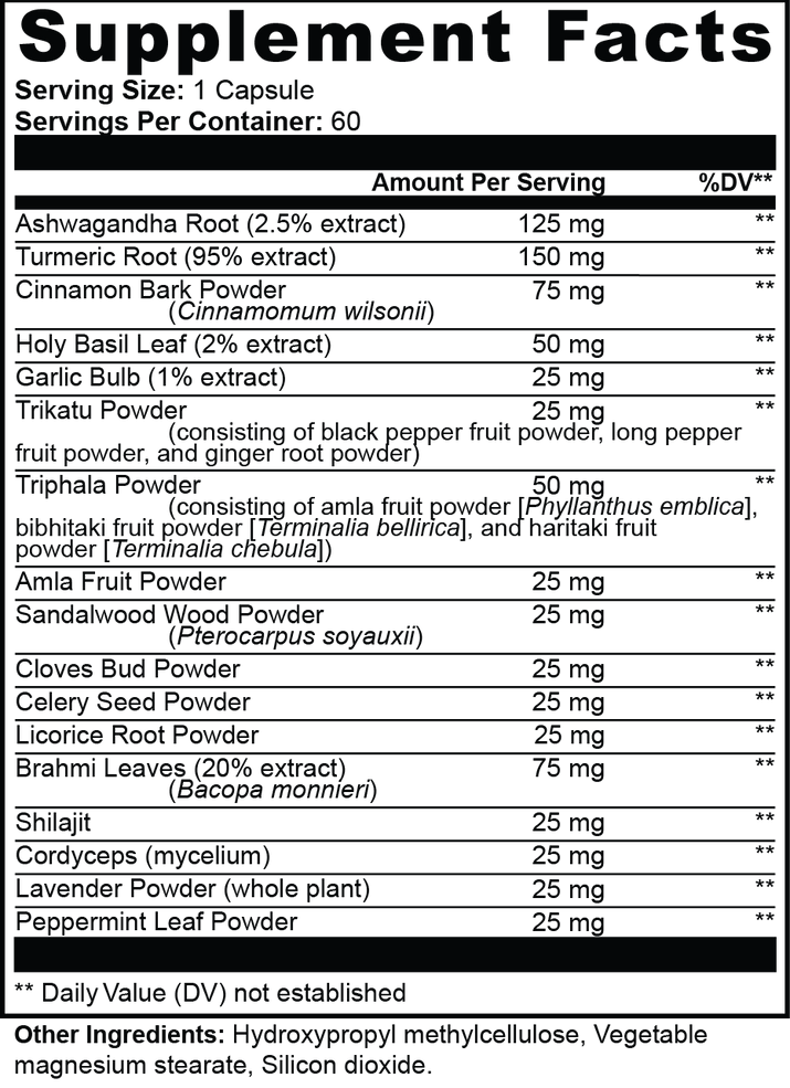 Answer 1: The product is designed to promote stress resilience, mental clarity, and a healthy inflammatory response. It combines adaptogens like Ashwagandha and Holy Basil, digestive tonics like Triphala, and antioxidant-rich botanicals, contributing to overall vitality and gut balance.
